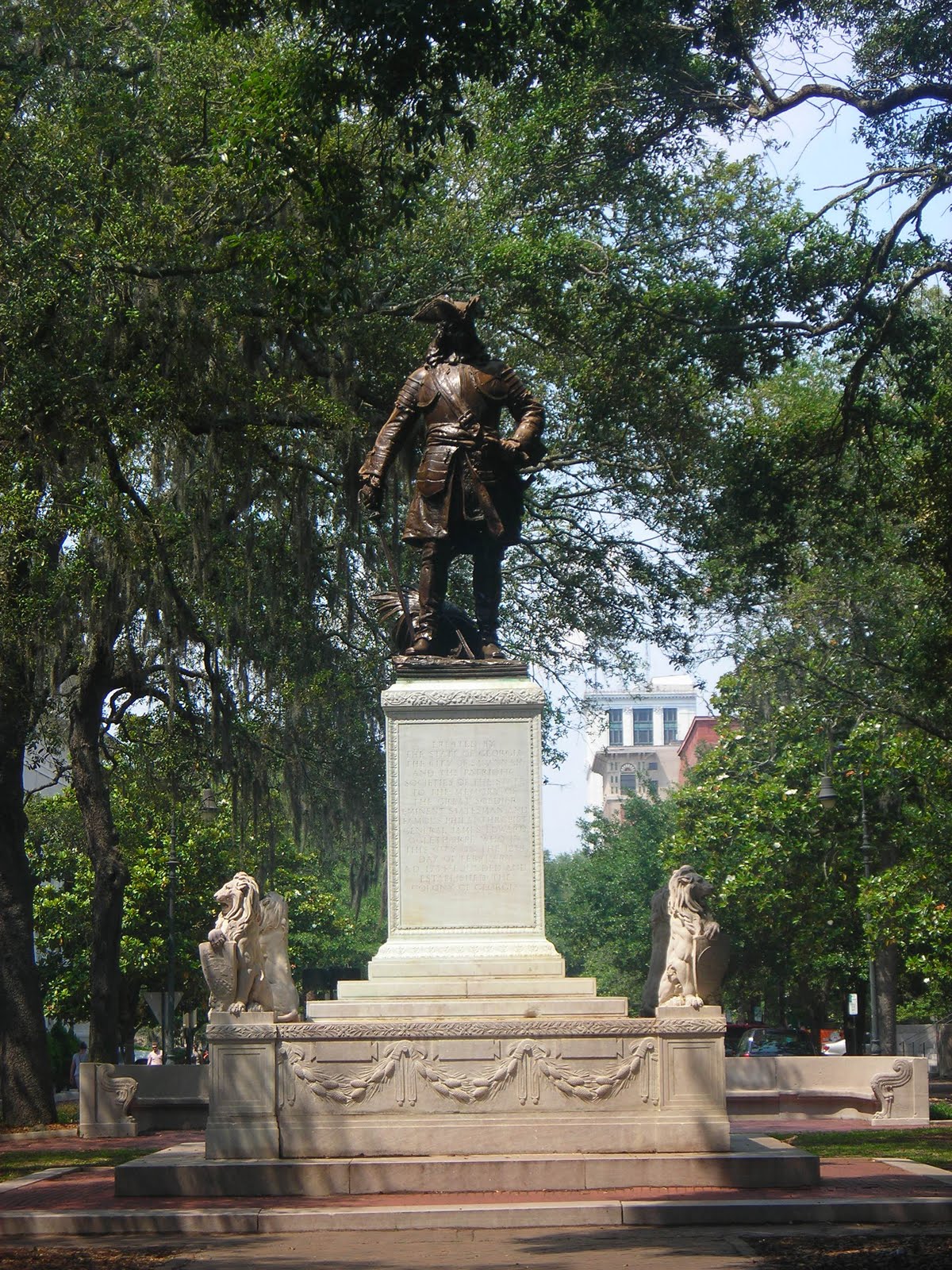 Statue of James Oglethorpe, founder of the colony of Georgia. He landed in Savannah and is responsible for the design of the grid system of the city.